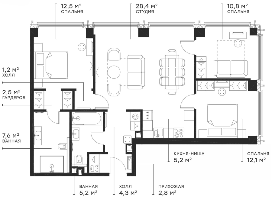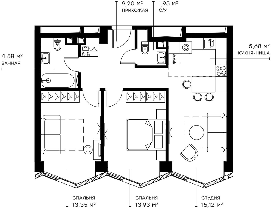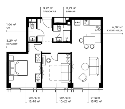Евро 3 комнатные