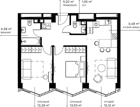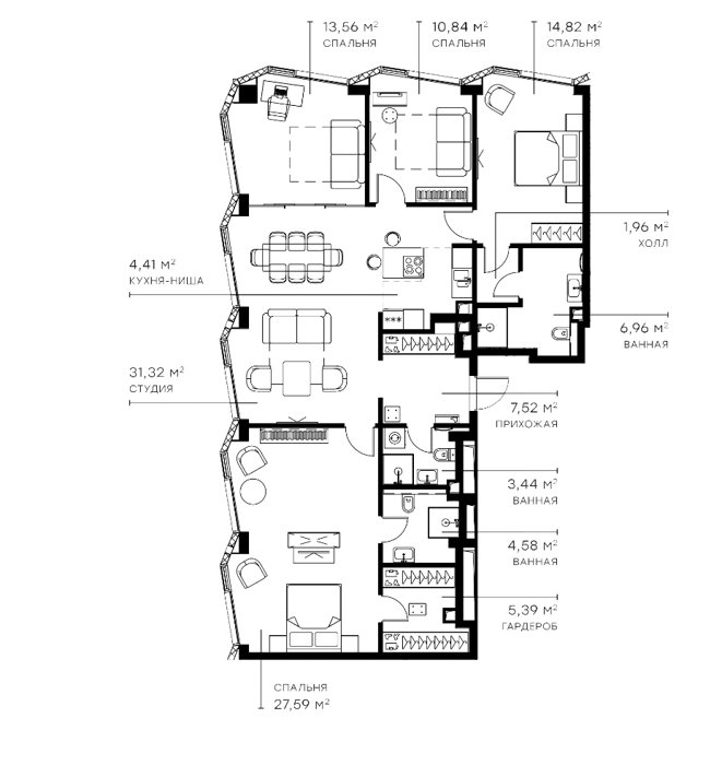 Площадь от 31.9 м2