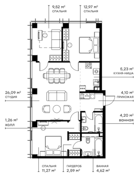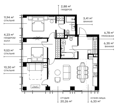 Площадь от 81.54 м2
