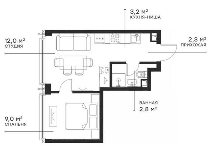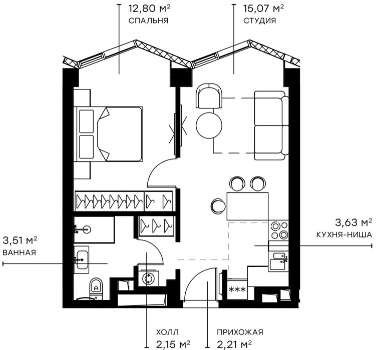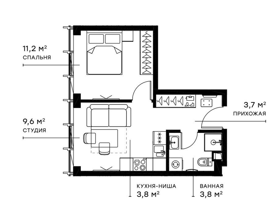Площадь от 27.8 м2