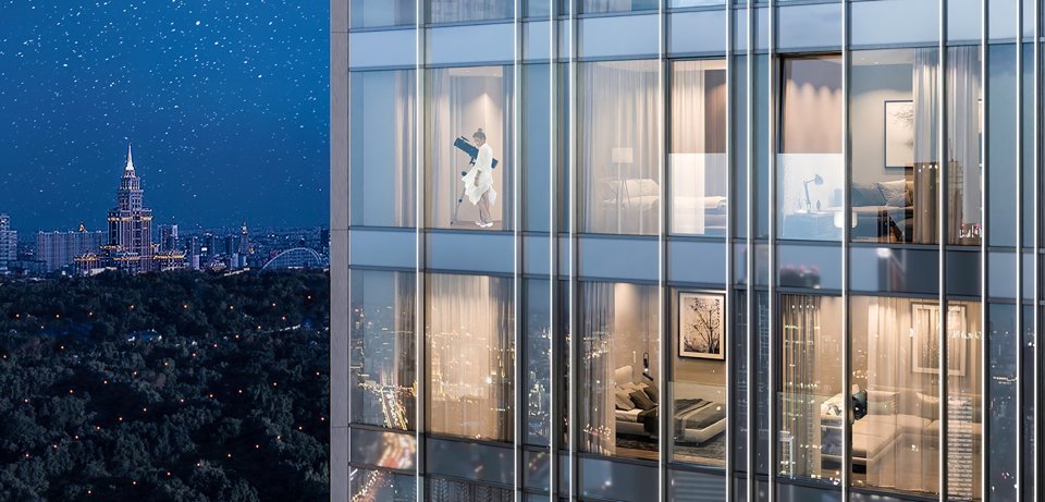 Более 1100 видовых квартир. Переменная высота от 36 до 54 этажей. Невероятные квартиры с воздушной перспективой есть в каждой башне. Высокие окна в пол открывают путь дневному свету и предлагают созерцать наш город в многообразии его форм и воплощений.
