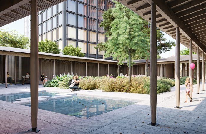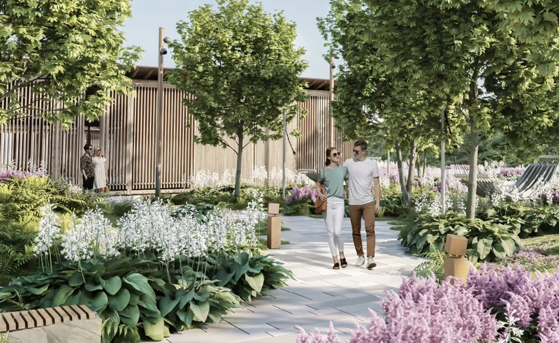 Приватный лаунж в японском стиле, с водоёмом, цветниками, арт-зоной, мини-лесом, павильоном с местами для отдыха и пространством community space. Именно здесь вы ощутите особую защищённость и оторванность от городской суеты.