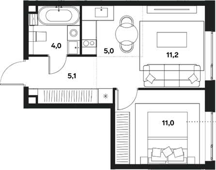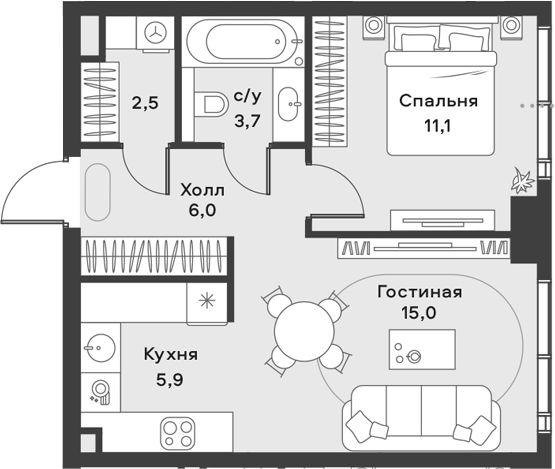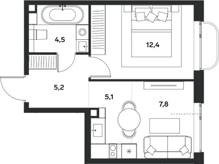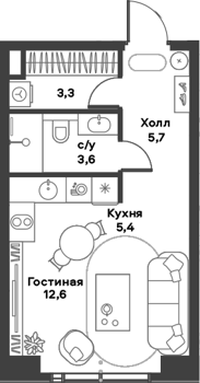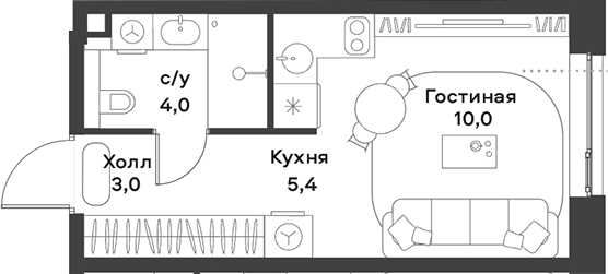 Площадь от 22.4 м2