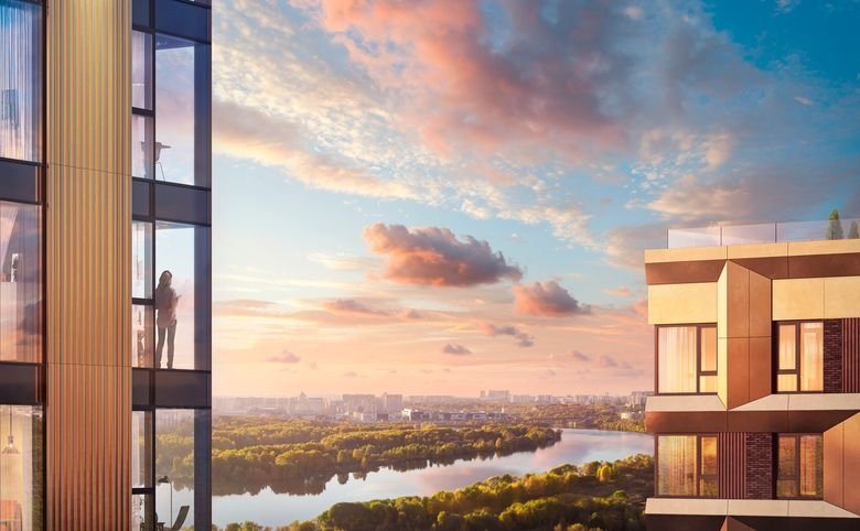 Жилой квартал расположен на берегу реки-Москвы напротив зеленой зоны — Большого Строгинского затона и Серебряного бора.