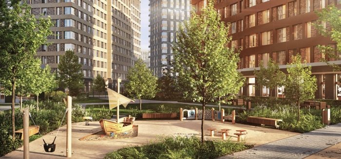Проекты благоустройства и озеленения внутренних зон урбан-блоков разрабатывали британское бюро Gillespies и российская компания Wowhaus.