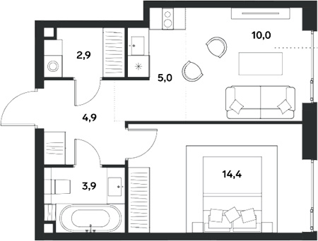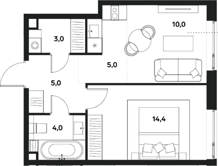 Площадь от 49.8 м2