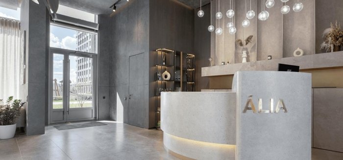 Центральное лобби — важная часть каждого урбан - блока. Здесь резидентов и гостей ÁLIA встречает консьерж, который ответит на вопрос, выполнит небольшое поручение и в нужный момент вызовет охрану.