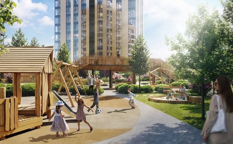 Для каждого двора разработана авторская концепция с всесезонным озеленением с современным оборудованием для воркаута, прогулочными дорожками и удобными детскими площадками.