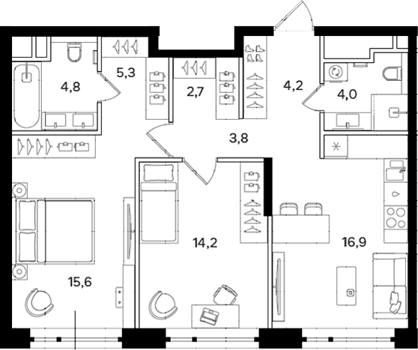 Площадь от 42.7 м2