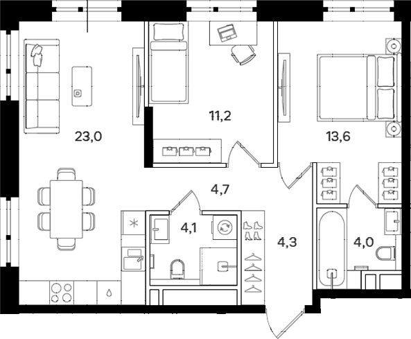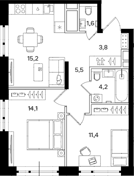 Площадь от 55.8 м2