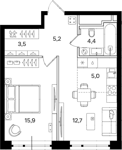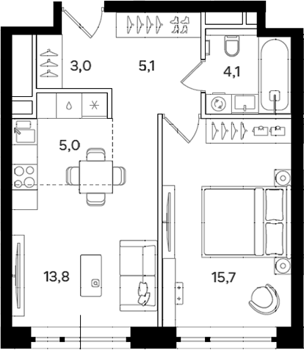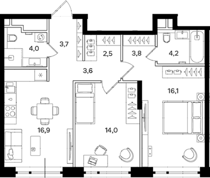 Площадь от 38.5 м2