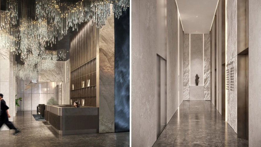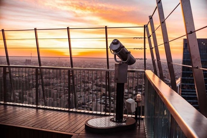 Яркими акцентами главной башни являются смотровая площадка на последнем этаже и фактурный ступенчатый излом вдоль всего здания, который придает уникальную форму планировочным решениям на средних и высоких этажах.