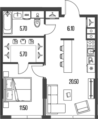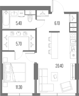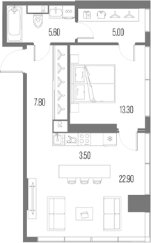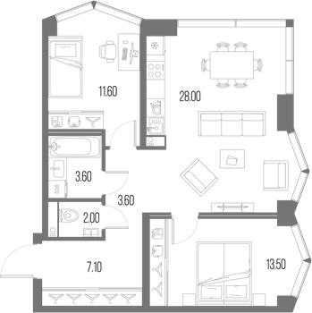 Площадь от 28.7 м2