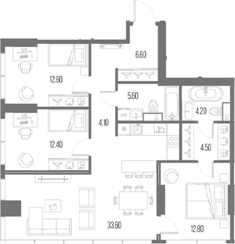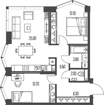 Евро 3 комнатные