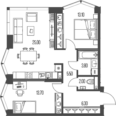 Евро 2 комнатные