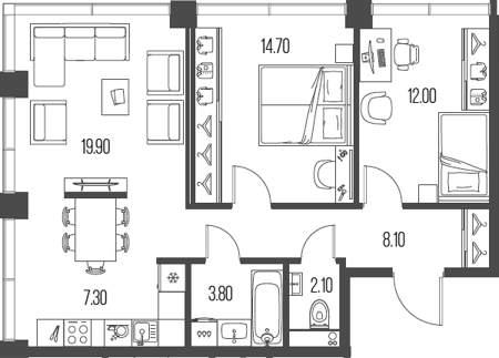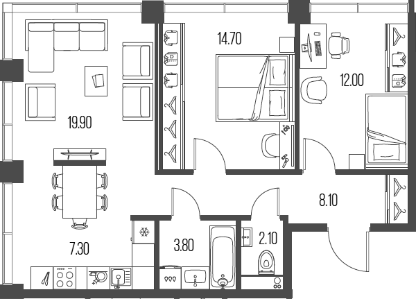 Площадь от 47.8 м2