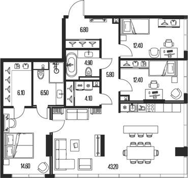 Евро 4 комнатные