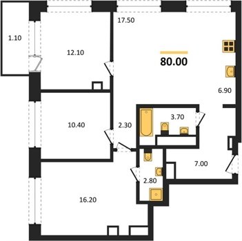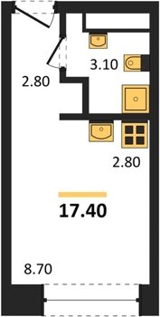 Площадь от 16.9 м2