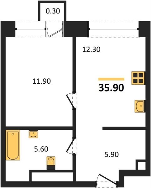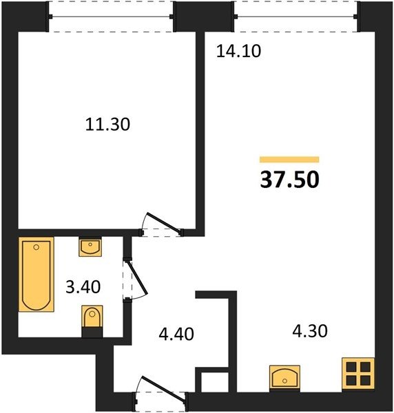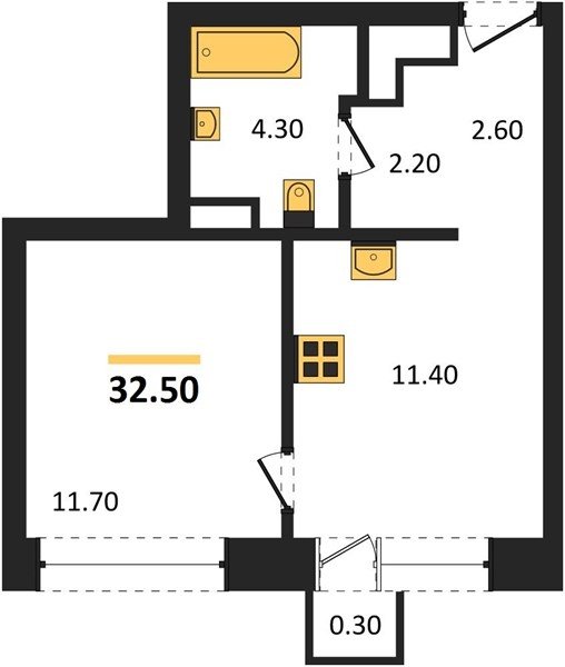 Площадь от 32.5 м2