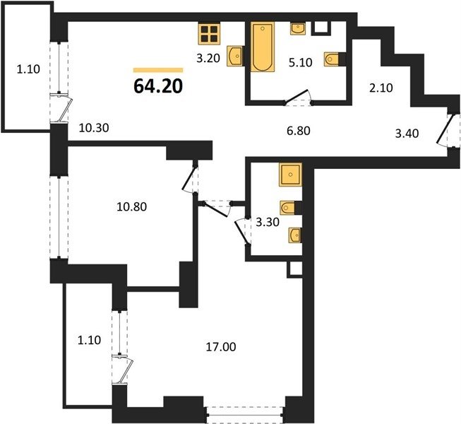 Площадь от 56.4 м2