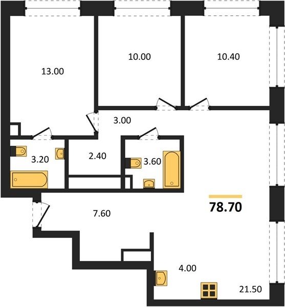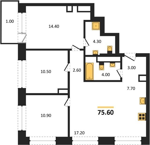 Площадь от 74.6 м2