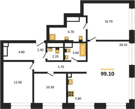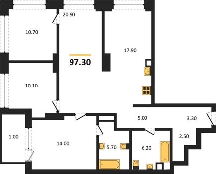 Площадь от 97.3 м2