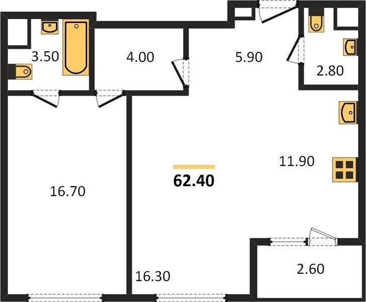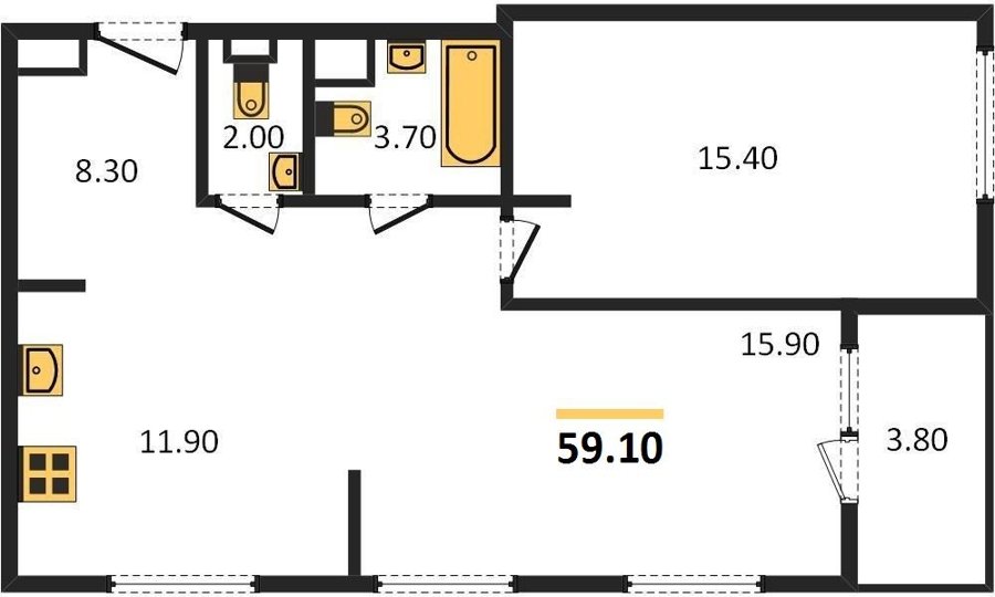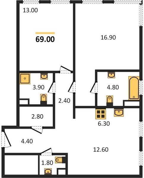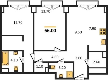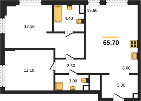 Площадь от 56.7 м2