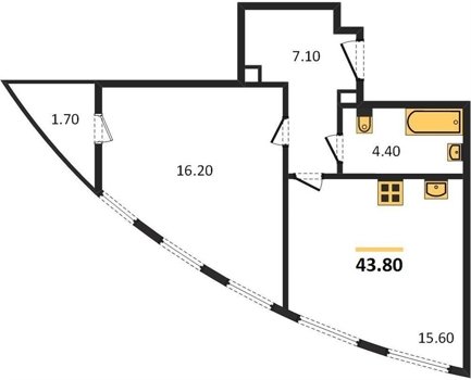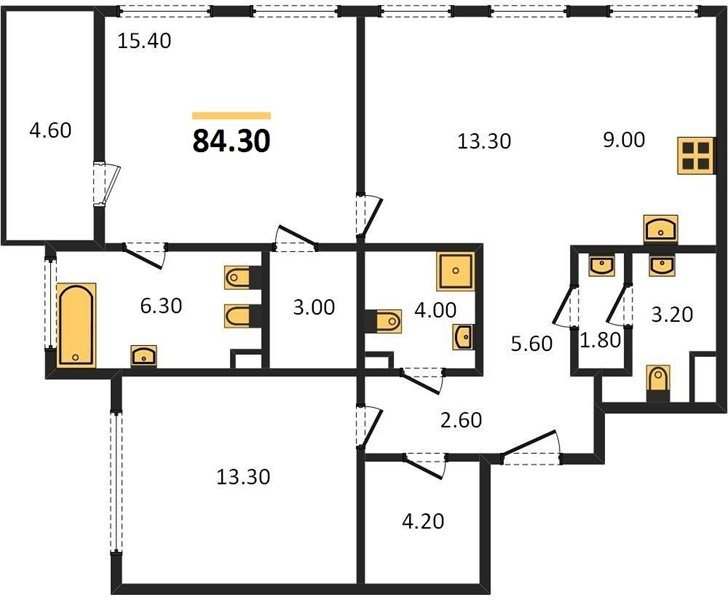 Площадь от 30.3 м2