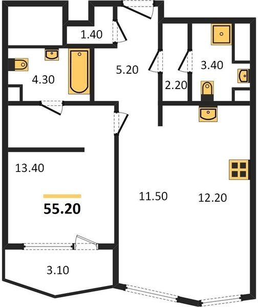 Площадь от 35.2 м2