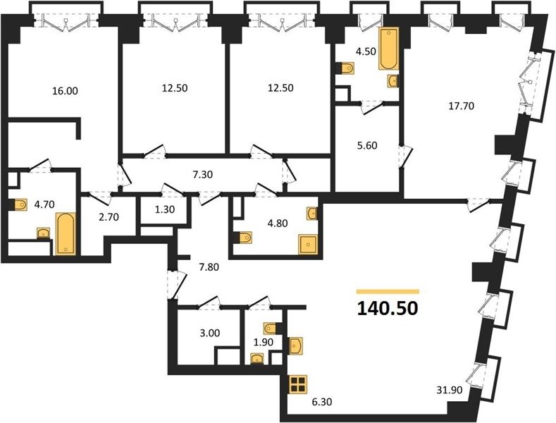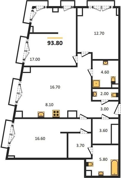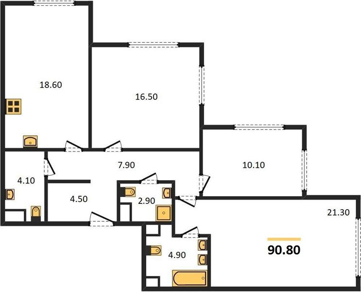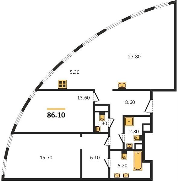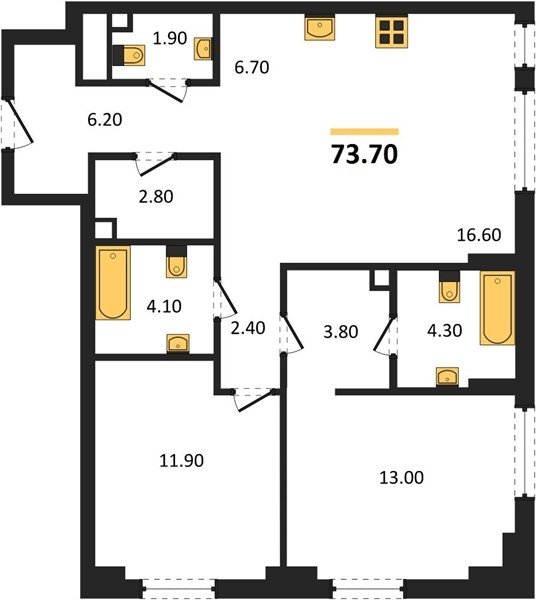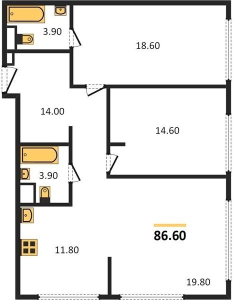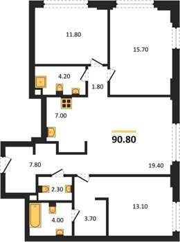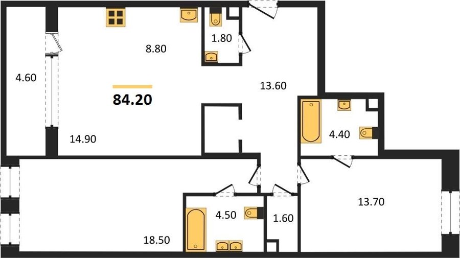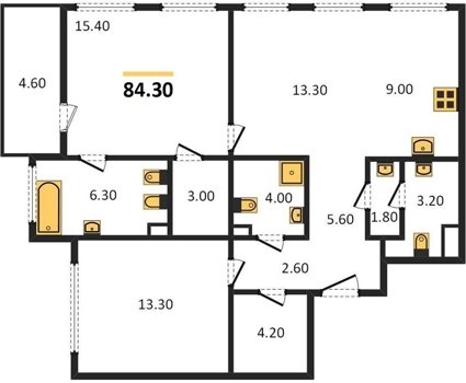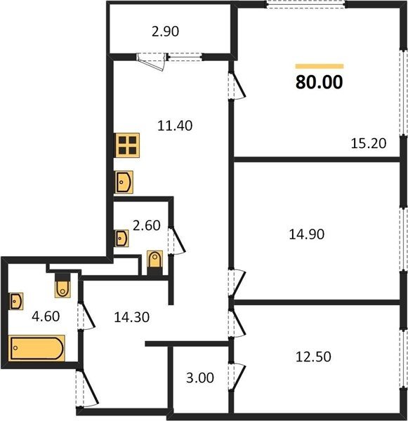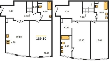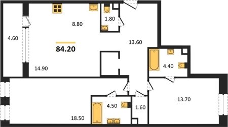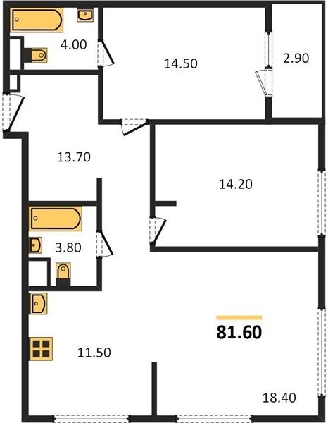 Площадь от 76.6 м2